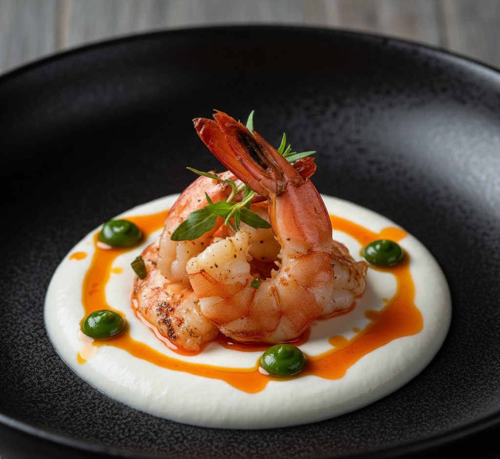 Verhit de plancha BBQ (of kamado met bakplaat) naar 250°C. Leg de gamba’s kort op de plaat. Bak ze slechts 60-90 seconden; ze moeten glazig en sappig blijven.